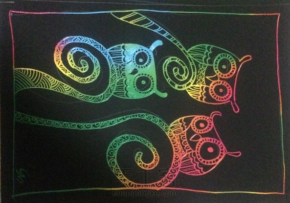 刮画纸上的缠绕画—9