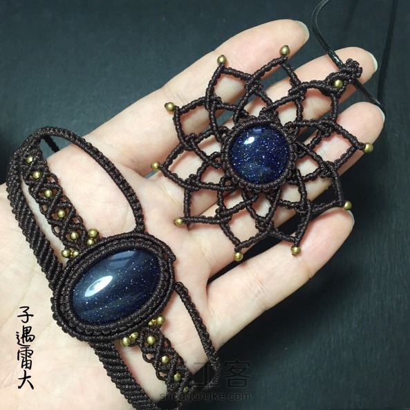去年用玉线做的一个组合,过年又用蜡线做了一个。这叫木兰,因为编的时候看着蓝砂石的闪闪亮,想到《木兰星》里的歌词。😈