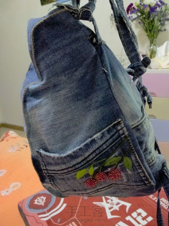 拆了一条旧牛仔裙,辛苦了几天手缝出了一个小背包,过几天出去踏青就可以背它了,好开心~刚学了点刺绣就在包上绣了几个小果实,看起更好看了~