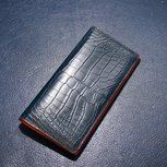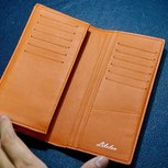 深蓝色钱包+橘色+烫字
