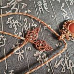 给自己备忘一下,A玉线为芯,3股彩金拉线绕线30cm,完成后结体33cm,接口部分需要再考虑处理方式,烧粘不牢固在整理结体的时候容易断开。