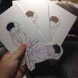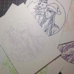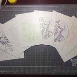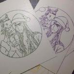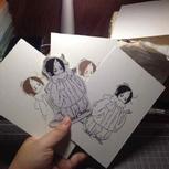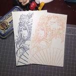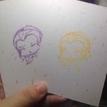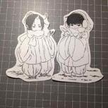 鬼灯和白泽,喜欢哪一个?贴了冷裱膜,印了贴纸,然而忘记买彩铅了,黑白的两只也是爱的……🙈🙈🙈