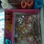 娃娃的头发还没封完。先做了一身古装。使用我们家最花的布做了的。