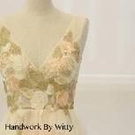 [亮片与管珠的缝制小样]我们常见的高定礼服上很少见大颗的钻石水晶,多是小号的亮片、管珠、米珠有序排列、堆砌,重手工缝制,却在视觉上营造出轻盈仙气却不乏华丽的视觉效果。