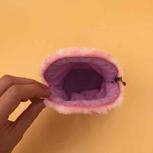 用毛绒布做的口金包,上面还镶嵌了珍珠,珍珠被毛毛盖住一些若隐若现很自然。