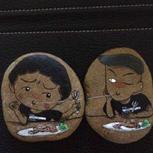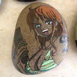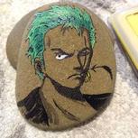海贼王卡通人物石头画,路飞、索隆、美娜,石头规格基本上是4-5厘米。