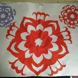 和小妞买了一本折纸她说要折花。不会折感觉好难。我干脆叫她剪了在拼。发挥一下想象力做出你想要的花。她做一个朵红花看像非洲菊。最后做成一个小捧花。我陪她做了2朵花。她说她全都要送给她老师。😂