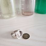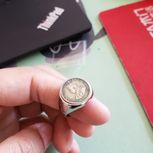 淘了一枚英国古银币,自己学着镀金了一哈,做个戒面。