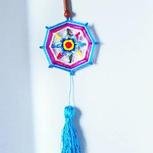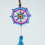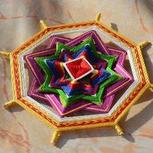 曼荼罗具有治愈和保护的作用。所使用的颜色也有不同的含义:红色—生命本身,黄色—太阳月亮和星星,蓝色—天空和水,棕色—土地,绿色—植物,黑色—死亡。 所以曼荼罗上帝之眼可以是祭坛上的工具,也可以是一种文化上的象征,编织的图案可以与心灵上结合 ,象征着神秘领域的能力~半成品。