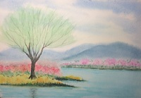 🎨🌾⚓️⛵️水彩风景 雪融成活泼的河,远方有牧人在吟歌。 我是一株准备远行的水草,不断地 不断地向你招手。 -----简媜《水草》
