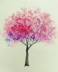 水彩:一棵开花的树 每一棵树都会说话。它说给大地听。说给昆虫听。说给露珠听。说给小鸟听。说给阳光听。沙沙,沙沙。。。