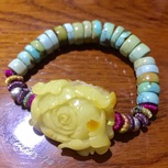 蜜蜡花花编的手链 2年前是个挂件,后来编成了手链,总感觉缺了点什么,于是自己学着做小线圈,稍加改动了下