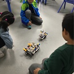 小朋友们玩得多开心呀。 这是今天上课拍的照片。孩子们玩着他们自己亲手搭建的机器小车 ,很高兴。很自豪
