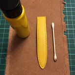 还剩一点点羊皮,看看能利用起来不,削薄真是磨耐心的事。
