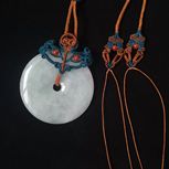 客人定制的平安扣,终于完工了。😀上次编的扣头自己不是很满意,剪了重新编。