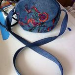 牛仔裤变包包第二弹,嘻嘻,跟上一个是同款包包,这条裤子有绣花,正好利用上,有小花花点缀,也不俗气!