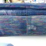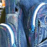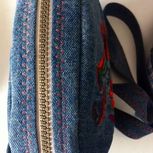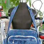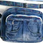 都是库存,最近没有做包包。这个大包包是一条超级肥的男士牛仔裤改的,没有弹力,很好用。用了花色线做装饰,蓝白两色拉链搭配用,包包里也都做了暗拉链和隔断,很实用。哈哈,这是我最喜欢的大包包!