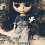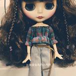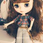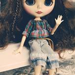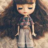 『机缝娃衣』这是小布的第三套衣服。格子和牛仔,是不是很配露肩加露脐😜️可爱中一点点性感,牛仔裤没有做破洞,所以加了回形花纹,也很别致!自己没有这身材,只有拿娃娃来过瘾啦😄️😄️