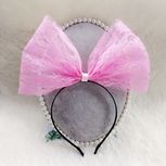 给妮妮做的超大蝴蝶结发箍,粉色闪粉硬纱,超大的蝴蝶结。让宝宝美美哒!
