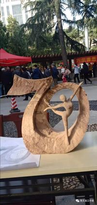 《颂》 颂是指赞扬,祝愿。利用现代雕塑手法和禅意方式运用于木雕创作中,刻意吹笛女那清宁高远的艺术氛围,来营造禅乐和平的气氛。意味着人民赞扬和平年代和享受和平的心理。