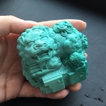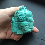 唐狮-中国古典造型,原矿松石手工雕刻作品,近300克的成品,拿在手里有手握玉玺,掌控天下的感觉! ꉂ೭(˵¯̴͒ꇴ¯̴͒˵)౨”