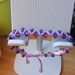 做了个三件套,手链 项链 压襟 紫色系,粉粉的, 阳光下闪闪的。