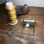 我又来啦 松石戒面一直没有想好怎么镶嵌 所幸就先用线包边 成品还没有做完 改天做好成品再上图吧