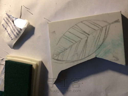 在硫酸纸上用铅笔画一片叶子