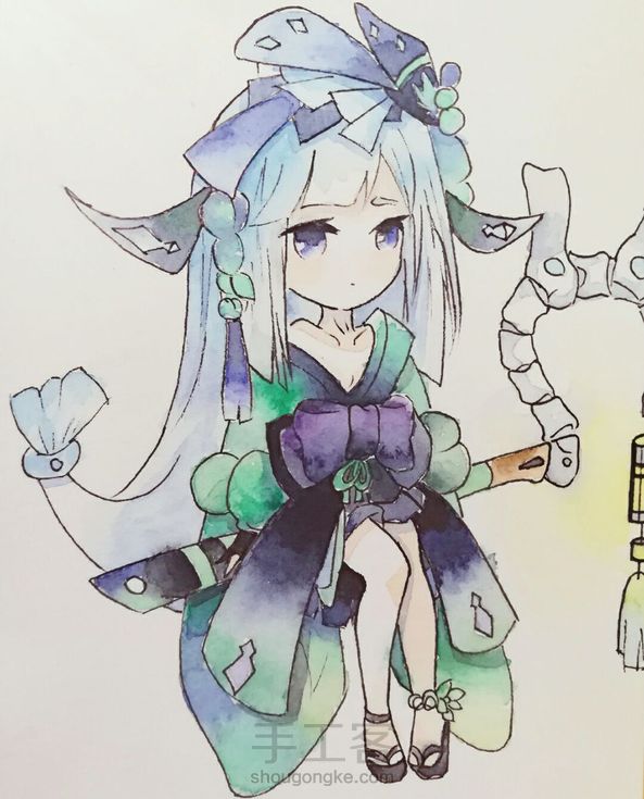 :炒鸡简单有木有啊!Q版的画不要加什么褶皱啦乱七八糟的,否则画面会乱的。要多多练习哦~( ̄▽ ̄~)~