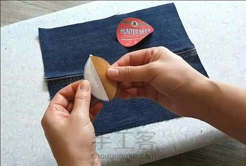 把贴纸贴在牛仔裤的表布上,为了粘性更好,可以用熨斗烫一下,会更结实和平整。