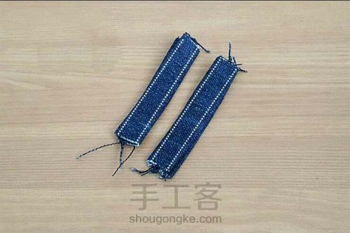 把两根提手车缝好。这个宽度可以随意掌据,一般1厘米宽就可以了。
