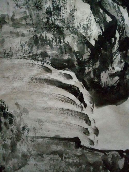 山后掩树要脆,画完山后用淡墨加以调整