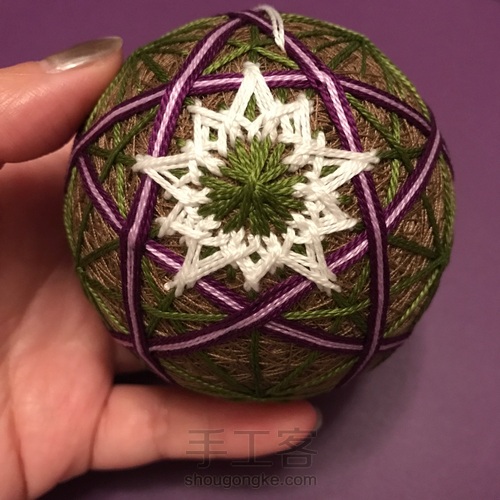 每个5边形中心都绣松叶绣