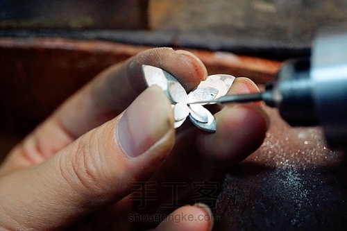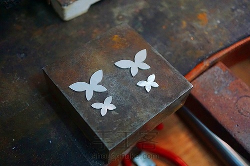 银板固定好,我们利用锯工把四个蝴蝶的翅膀锯切