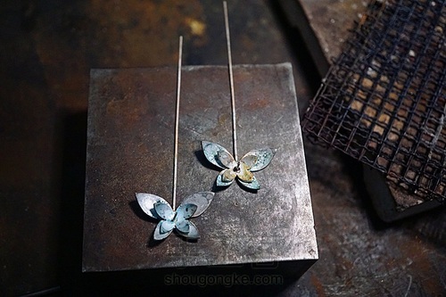 在蝴蝶的中间定位珍珠的位置,焊针用作固定珍珠。第10步: