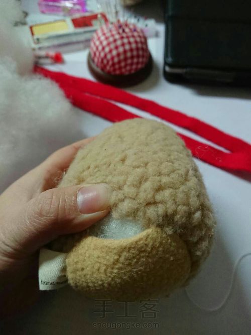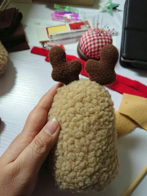 | 摇粒绒布料驼色,红色 | 半圆黑色珠子可用纽扣或者不织布代替眼睛 |