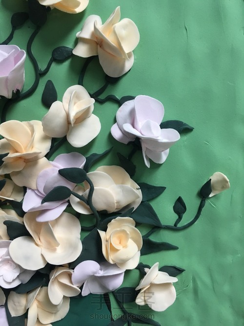开始粘贴,粘土干了可以使用白乳胶固定