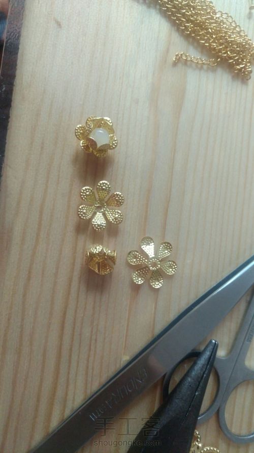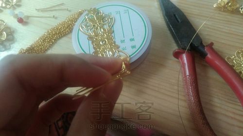 给链子加上坠片,用铜环连在扇形片上,如果开不开铜环可以用镊子