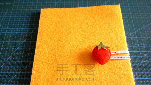 把草莓装饰粘贴在织带的另一端,并把魔术贴固定好。