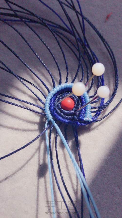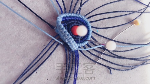 宝蓝色两条做轴线,淡蓝色做平结。