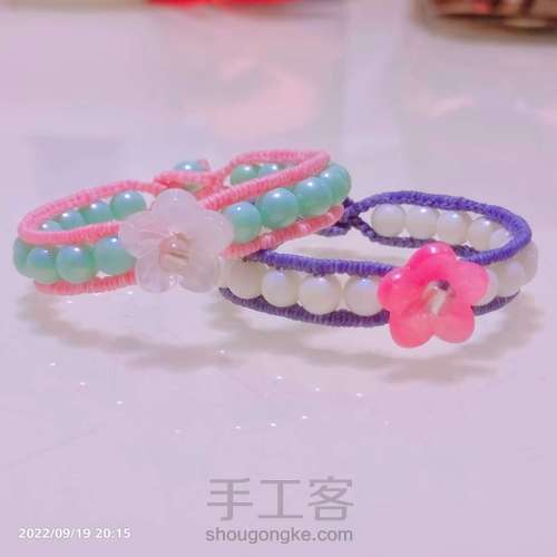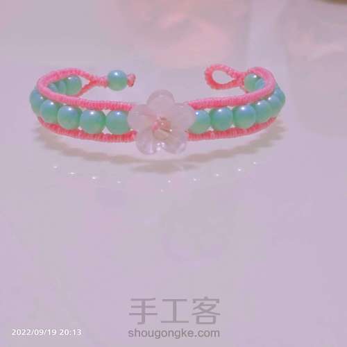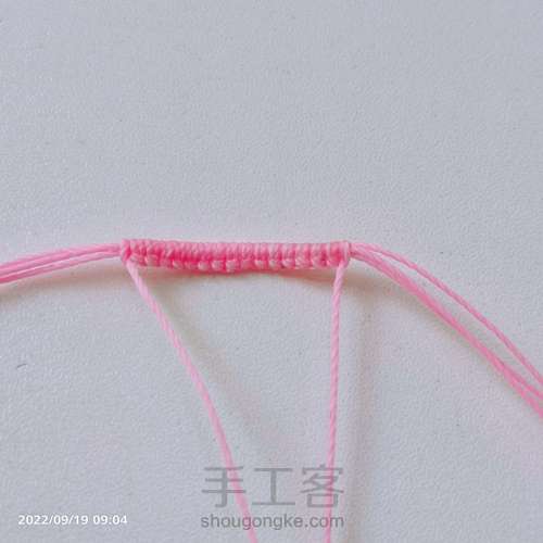 拉紧,在继续分别两边做6个雀头结,再穿珠子,重复。