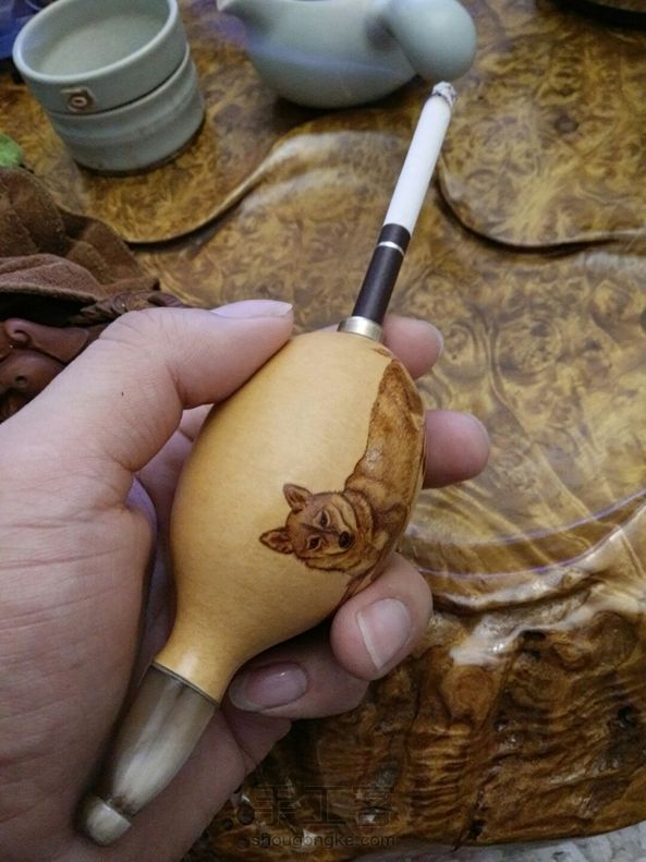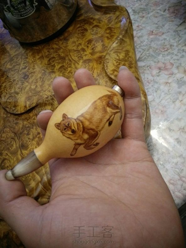 葫芦烟斗,血丝牦牛角做嘴,铜头(芯可拆下反复清洗,,烙画,烙字内容可订制,