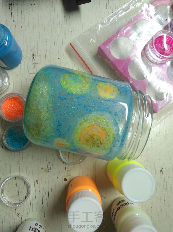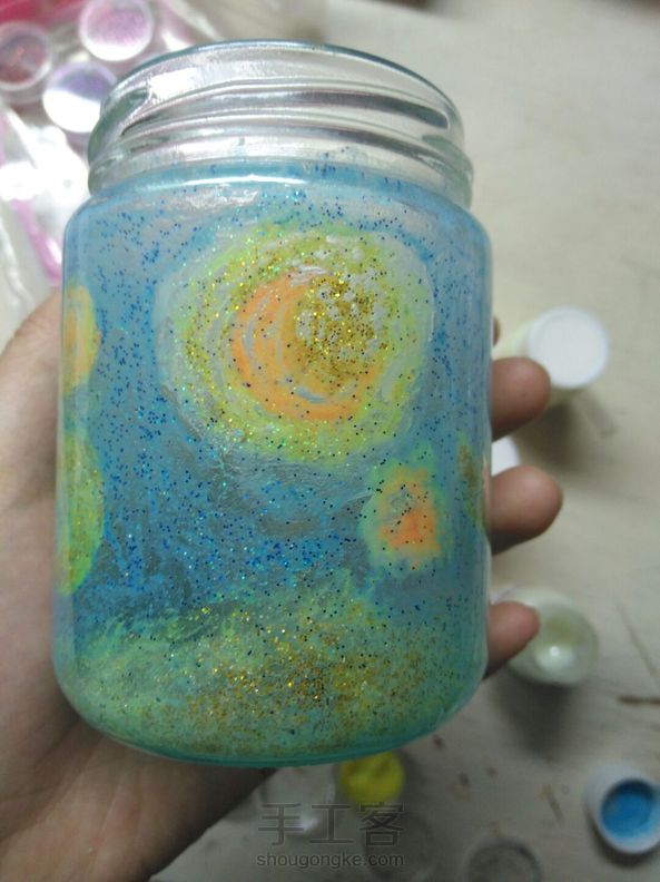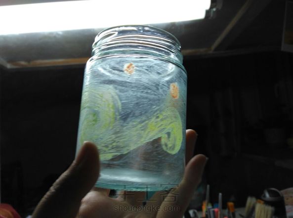 就是想试试把梵高的星月夜用夜光漆画在瓶子上