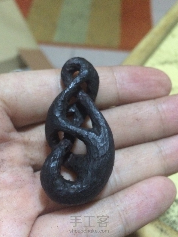 送的紫光檀,避开裂纹刚好可以模仿一个不知名的抽象吊坠