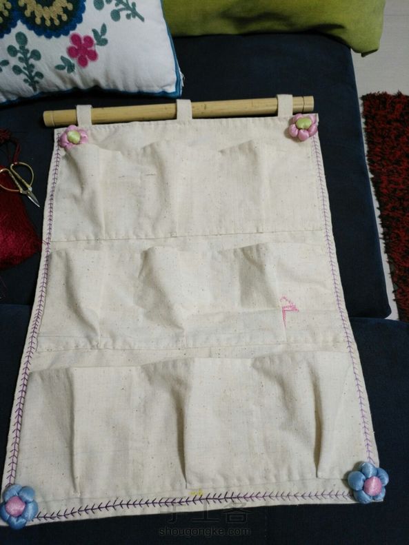 第一次做手工,用棉布做了个收纳袋,没有缝纫机全部手缝,小布花也是自己做的,很有成就感,给自己点赞