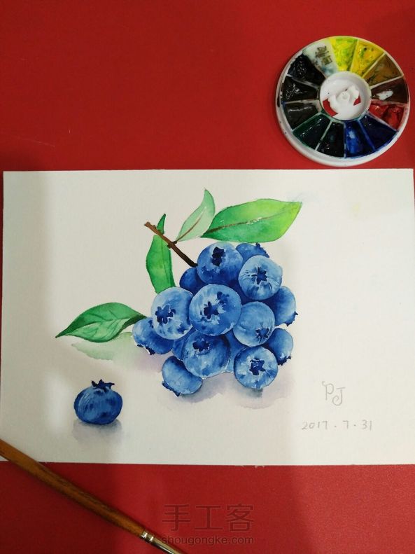 可爱的水彩蓝莓教程