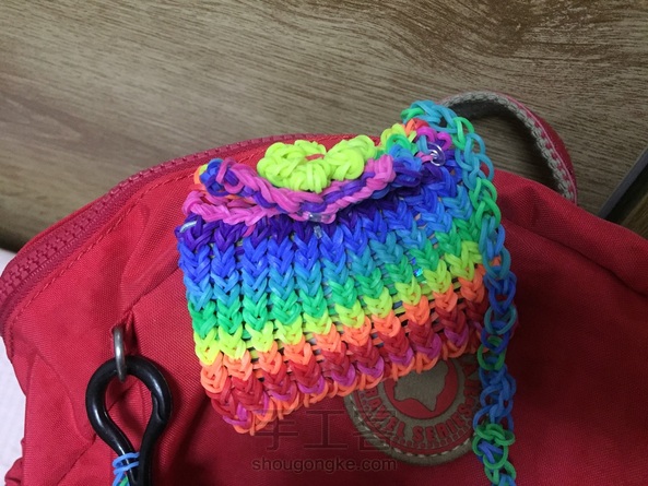 彩虹编织机也能编织出小包包,装个交通卡正好。应该算钩编吧