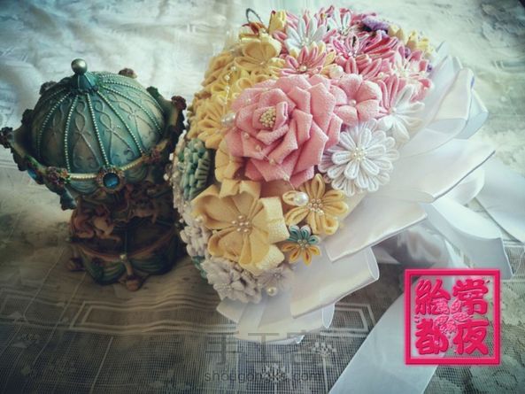细工花入圈的第一个成品,遇到了很多都问题,也请教了几位大大,自己也是赶时间边翻书边捏花瓣。四天的兵荒马乱,换来一个送妹纸的结婚捧花,感谢各位大大的不嫌弃。举着被热熔胶烫肿哒爪子,决心继续努力捏花。欢迎各位大大指教,也欢迎和我一样的小萌新一起努力ヾ(❀╹◡╹)ノ~