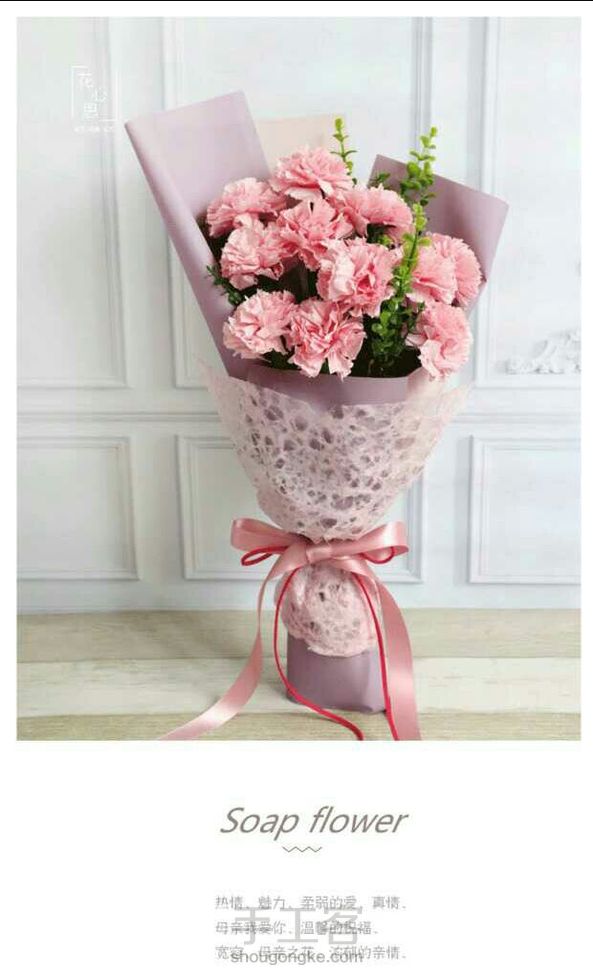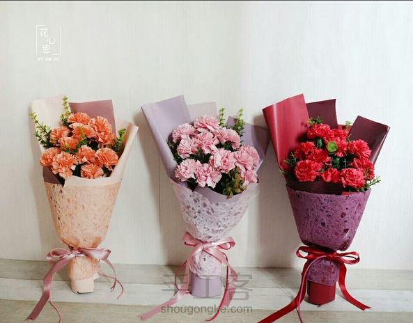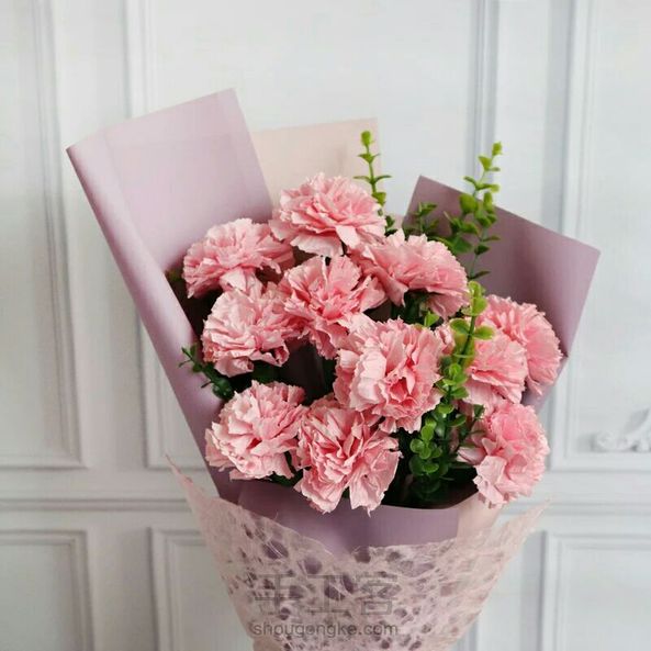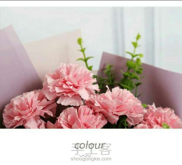纸藤花,康乃馨花束。