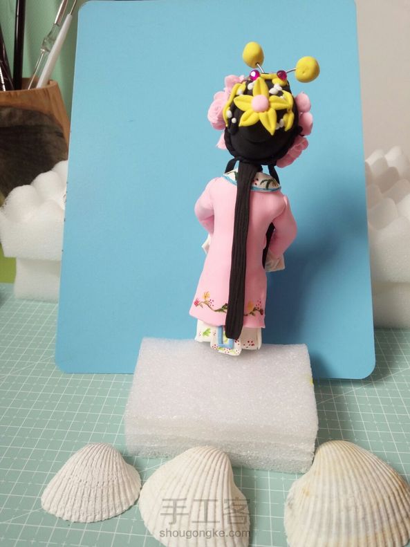 学习木口子老师的作品,京剧人物,三天做出来还是这个渣样,改良的地方是因为实在做不出来了,无手人😄,还不会捏手,不过自己挺知足,零基础练习出来的,我觉得有进步,下一步要从基本功练起